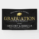 Double the celebration, double the fun! An simple joint graduation banner featuring a stylish black background that can be changed to any color, a faux gold graduation cap and a modern double celebration template that is easy to personalize.