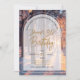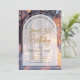 FRONT: Stunning winter photo backdrop with an elegant arched overlay. Features customizable Name, Age, and Party Details in luxurious Gold Script. Ideal for a New Year's Eve dinner or festive gathering.