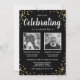 Introducing our elegant joint memorial invitations - where personalization meets sophistication. The stylish black background can adapt to any color of your liking, opening a space for two photos that hold precious memories. Touched up with gold glitter, these invitations follow a modern double celebration of life template, making it a perfect choice for a polished and heartfelt commemoration.