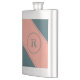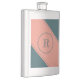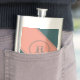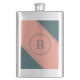 This humorous flask features a centered geometric double circle in teal over a pale salmon background. Personalize the text field with an initial letter or click customize to select a typeface color, size, and style your prefer.