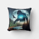 Throw pillow with Bigfoot with a double exposure of trees, a river, an eagle and a full moon.