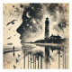 This captivating double exposure photo art features a portrait intertwined with a starry sky and a solitary lighthouse, creating a powerful blend of human form, cosmic elements, and the guiding light of nature. Rendered in black and white with a washed-out texture and grunge finish, the image evokes a sense of mystery and introspection. The lighthouse serves as a symbol of hope and direction, set against the vast starry sky, while the abstract composition invites a deeper reflection. Ideal for adding a modern and emotionally charged touch to your space.