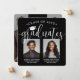 It's a double graduation! Announce the achievement of two graduates with stylish joint graduation custom photo square announcements. The pictures and wording are simple to personalize for announcement cards or grad party invitations. Additionally, the colors can be customized using the Zazzle design tool. (IMAGE PLACEMENT TIP: An easy way to position a photo exactly how you want is to crop it before uploading to the Zazzle website.) The modern black and white design features handwritten style script calligraphy with a mortar board cap, elegant classic typography, and four photos of your choice, such as senior pictures or images from the commencement ceremony. This graduation invitation card is a stylish way to announce a special day celebration for any two grads, such as siblings, best friends, cousins, twins, brother and sister, etc. Congratulations to both of the graduates!