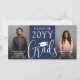 It's a double graduation! Announce the achievement of two graduates with stylish joint graduation custom photo announcements. All pictures and wording are simple to personalize for announcement cards or grad party invitations. Additionally, the colors can be customized using the Zazzle design tool. The modern navy blue and white design features handwritten style script calligraphy with a mortar board cap, elegant classic typography, and four photos of your choice, such as senior pictures or images from the commencement ceremony. This graduation invitation card is a stylish way to announce a special day celebration for any two grads, such as siblings, best friends, cousins, twins, brother and sister, etc. Congratulations to both of the graduates!