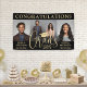 It's a double graduation party! Add a personalized touch to a joint graduation celebration honoring two graduates with a stylish three photo collage "Congratulations Grads" banner. The pictures and all wording on this template are simple to customize. It includes class year, graduate names, and any other custom text, such as school names, degrees, honors, etc. (IMAGE PLACEMENT TIP: An easy way to position a photo exactly how you want is to crop it before uploading to the Zazzle website.) The modern black and gold design features handwritten style script calligraphy, elegant classic typography, and three photos of your choice, such as senior pictures or images from the commencement ceremony. Please note that gold is printed color, not metallic foil. This graduation sign is a stylish way to welcome guests to a special day celebration for any 2 grads, such as siblings, best friends, cousins, twins, brother and sister, etc. Congratulations to both of the graduates!