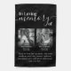 Personalized double gravestone flag honoring two people who have passed away, featuring a photo of them both, the text "in loving memory of", their names, birth/death dates, and the remembrance saying "those we love don't go away, they walk beside us every day, unseen, unheard, but always near, still loved, still missed and very dear".