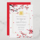 A wedding invitation featuring falling red flowers in gold frame and double Xi.