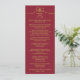 Modern minimalist double happiness knot of union, love and marriage in red and gold wedding reception / party menu card.