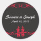 Having an Asian theme wedding? This design is perfect for you. With the Chinese word "double happiness" on it. This custom stickers will look great on your favor boxes and bags.
