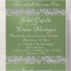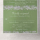 This romantic design features an elegant sage green background with glitter borders, a delicate silver hearts intertwined, details for the event in elegant script. Also available with different colored backgrounds for your wedding theme colors. (Glitter is simulated in the artwork). Designed to coordinate with the "Two Shall Become One - Hearts, Doves & Glitter" Wedding Collection. To change details, click «Personalize». To move the text or change the text size, font, or color click «Click to customize further»