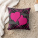 Double hearts and dark pink plaids with black - throw pillow. Perfect for teen room.