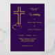 This beautiful wedding invitation in your choice of gold, silver, or rose gold foil and royal purple gives a sense of elegance to your wedding! The front left has a beautiful double line cross with two hearts at the foot of it. Your wedding text is at the right of the image. Everything is placed on a beautiful purple background. The back of the invitation is also purple. Elegant for any season!