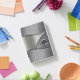 This sleek and modern hi-tech design features a double layer of silver mesh with a metallic silver insert and inlaid circle ready for your initial or monogram. "Double Mesh Swoop" by Cheryl Daniels © 2014. For questions or custom requests, contact: cheryl@cheryldanielsart.com.