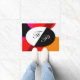This brilliant doormat is made unique by an abstract minimalist decor, playing on the contrast of black, white and warm colors (dark red, red, orange, fuchsia). Nitid and blurred lines come together to create a symmetrical, elegant effect, while the oval shape in the centre reminds of a fusion between an egg and a Taijitu (the yin - yang representation), floating on a background of fiery, powerful warm bright colours.
