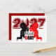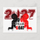 Double odd goats in black and red illustration. Design on postcard with large customizable 2027. You can easily change text (color, font, size and position) by clicking the customize button.