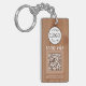 A cherry wood patterned keychain, designed to make the QR barcodes aesthetically pleasing, without losing functionality. The keychain is two-sided, with a different QR code field on each side. Each side has its own subtitle for clear labeling. Link to two different addresses, like one for payment and one for promotion, or just use the same link in both QR barcode fields (both sides of the keychain) for ease of use. There is a place to add your logo on the front, and another for business contact information on the back.