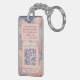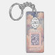 A pink clouds keychain designed to make the QR codes aesthetically pleasing, without losing functionality. This keychain is double-sided, with two separate QR fields, each with its own subtitle for labeling. Link to two different websites, like one for payment and another for wifi; or just input the same link in both QR code fields (both sides of the keychain) for ease of use. There is also a place to add your logo on the front, and another for business info on the back.