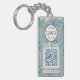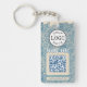 A keychain using a blue pattern by William Morris, designed to make the QR barcodes aesthetically pleasing, without losing functionality. The keychain is two-sided, with a different QR field on each side. Each side has its own subtitle for clear labeling. Link to two different sites, like one for wifi access and another for a discount code; or just use the same link in both QR barcode fields (both sides of the keychain) for ease of use. There is also a place to add your logo on the front, and another for business contact information on the back.