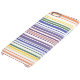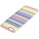 Geometric barcode design features two rainbows made of pairs of colored stripes that correspond to UPC numbers. Getting my geek on, the numbers correspond to the letters in "rainbow" to make a double rainbow. Since barcodes are only 12 numbers long, I let the "r" be represented by the red start and middle stripes. The sequence starts on the left with red, orange, yellow, green, blue, indigo, and violet. Two stripes of red serve as a divider in the middle and then the colors go from violet back to red for a balanced look.