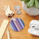 Geometric barcode design features two rainbows made of pairs of colored stripes that correspond to UPC numbers. Getting my geek on, the numbers correspond to the letters in "rainbow" to make a double rainbow. Since barcodes are only 12 numbers long, I let the "r" be represented by the red start and middle stripes. The sequence starts on the left with red, orange, yellow, green, blue, indigo, and violet. Two stripes of red serve as a divider in the middle and then the colors go from violet back to red for a balanced look.