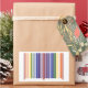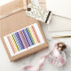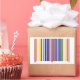 Geometric barcode design features two rainbows made of pairs of colored stripes that correspond to UPC numbers. Getting my geek on, the numbers correspond to the letters in "rainbow" to make a double rainbow. Since barcodes are only 12 numbers long, I let the "r" be represented by the red start and middle stripes. The sequence starts on the left with red, orange, yellow, green, blue, indigo, and violet. Two stripes of red serve as a divider in the middle and then the colors go from violet back to red for a balanced look.