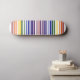 Geometric barcode design features two rainbows made of pairs of colored stripes that correspond to UPC numbers. Getting my geek on, the numbers correspond to the letters in "rainbow" to make a double rainbow. Since barcodes are only 12 numbers long, I let the "r" be represented by the red start and middle stripes. The sequence starts on the left with red, orange, yellow, green, blue, indigo, and violet. Two stripes of red serve as a divider in the middle and then the colors go from violet back to red for a balanced look.