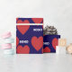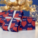 Valentine's day wrapping paper featuring a double red heart and white xoxo (hugs and kisses) pattern blue background. Perfect gift wrap for your boyfriend or girlfriend on Valentine's Day, birthday or anniversary.