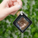 The key chain is made of metal and really sturdy. The flower design is really cheerful. The logo and colors are clear and crisp!
