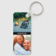 4 personalized edge print photos and names of your choice on a metal keychain with rounded corners.