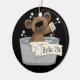 Lightweight, smooth, pure white ornament with nice sheen. Perfect size to be seen from across the room ... and to attract closer inspection! Price was great for ordering enough for the whole family! Clear, bold black design just as requested. Matches the order exactly. Just so nice!