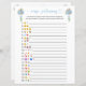 This double sided game card features two different versions of emoji pictionary on the front and back, and is perfect for a baby shower or baby sprinkle. This emoji pictionary baby shower game features watercolor blue balloons and soft sage and green eucalyptus leaves and fern botanicals. Your guests can solve these common pregnancy and baby related phrases by decoding the emoticons. ANSWER KEY: 1. Baby Shower 2. Twins 3. Triplets 4. Mama to Be 5. Water Breaking 6. Hospital Baby Bag 7. Due Date 8. Baby Bottle 9. Trip to the Hospital 10. Cutting the Cord 11. Bun in the Oven 12. No Alcohol 13. Girl or Boy? 14. Pregnancy Announcement 15. Baby Food 16. Heart Burn 17. Morning Sickness 18. Butterfly Kisses 19. Baby Moon 20. Pregnancy Cravings. Your guests can solve the names of the children’s books and nursery rhymes by decoding the emoticons. ANSWER KEY: 1. Five Little Monkeys Jumping On The Bed 2. Twinkle Twinkle Little Star 3. Itsy Bitsy Spider 4. Rainbow Fish 5. The Very Hungry Caterpillar 6. The Lion, The Witch & The Wardrobe 7. Hickory Dickory Dock 8. I spy 9. Green Eggs and Ham 10. Winnie The Pooh 11. Charlotte's Web 12. Alice in Wonderland 13. If You Give A Mouse A Cookie 14. Hey Diddle Diddle 15. There Was an Old Woman 16. One Fish, Two Fish, Red Fish, Blue Fish 17. Where The Wild Things Are 18. Goldilocks and the Three Bears 19. The Three Little Pigs 20. Old MacDonald Had a Farm. You can personalize this design by clicking on "Personalize this template" or if you wish to change the font, colors or arrange the design elements in a different way you can click on "Edit using Design Tool".