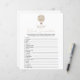 This double sided game card features word scramble on the front and bingo on the back, and is perfect for a baby shower or baby sprinkle. This word scramble bingo game features a boho beige watercolor hot air balloon. Perfect for a gender neutral celebration. You can personalize this design by clicking on "Personalize this template" or if you wish to change the font, colors or arrange the design elements in a different way you can click on "Edit using Design Tool". Answer Key: 1. Diaper 2. Bassinet 3. Bottle 4. Crib 5. Pacifier 6. Changing Table 7. Stuffed Animal 8. Stroller 9. Rubber Ducky 10. Blanket 11. Teether 12. Formula 13. High Chair 14. Mobile 15. Thermometer 16. Baby 17. Milk 18. Booties 19. One-sie 20. Teddy Bear