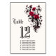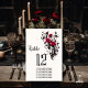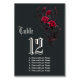 A timeless buff beige backdrop sets the tone on onside, while on the reverse is a rich charcoal black, stunning deep crimson and black rose bouquet - the perfect design to set off your gothic wedding reception - Text accents in Old English Gothic style calligraphy Design by ©WhimsicalArtwork™