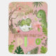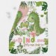 Wrap your little one in comfort and style with this personalized, reversible baby blanket! One side features the charming watercolor hatching dino and a friendly adult dino on white background with a lush tropical leaves backdrop, customized with your child's name and the playful text "the DINO mite". The reverse side offers a pink watercolor background with the same adorable dinos. Both sides proudly feature the empowering phrase "Girls can roar too!". Measuring 39"l x 29"w, this soft and cozy blanket is perfect for snuggling, tummy time, or as a stylish accent in the nursery. It makes a thoughtful and unique baby shower gift that perfectly coordinates with the collection.