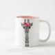 Whimsical giraffe with flower crown can be seen on both sides of coffee mug. Background color can be changed to your liking. makes a unique and thoughtful gift.