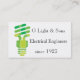 A double sided business card featuring a light bulb graphics set, edit any and all of the text for your own information, great for electricians, inventors or engineers. Please drop me a line if you would like to see this theme on any other items.
