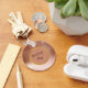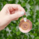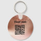 Carry your brand's glamour with you everywhere with this sophisticated and stylish custom keychain! This round keyring is designed with a high-end rose gold metallic foil background that beautifully catches the light, layered with shimmering rose gold glitter confetti for a luxurious, textured look. You can easily upload your own logo or personalize the space with your brand name or custom text (e.g., "Your Logo Here" in black script). the back is for your own QR code and company name.