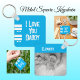 Double sided love daddy add name white blue photo keychain