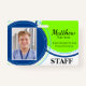 Double Sided Professional ID Badge with blue and green circle pattern.