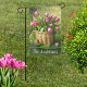This double sided garden flag with simply gorgeous pink tulips in a wicker basket can be personalized with your desired name or phrase.
