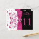 This romantic black and white and pink floral double-sided table number post card has a PRINTED satin look ribbon and bow with a pair of PRINTED diamond jewel and FAUX glitter joined hearts on it that matches the wedding invitation shown below. You must customize the card for EACH table number that you need, by changing the "11" to each number you need, adding it to your cart, and then repeating the process until you have the correct number of individual cards in your cart. If you have any questions, email niteowlstudio@gmail.com.