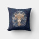 Get this artsy, unique, modern double-sided throw pillow for yourself, loved ones or for your business, featuring a watercolor astrological sign, the Vigro in a beautiful illustration and custom text on both sides, over blue background, designed by PiccoGrande.