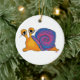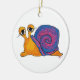 This round ornament has two snail designs on it: on one side, the snail has a golden body with a blue and pink shell; on the reverse, the snail has a pink body with a blue and purple shell. With their intriguingly large eyes, these snails will delight both children and children trapped in adult bodies. A unique addition to your holiday decorations and a gift for any nature-lover or science teacher.