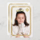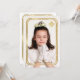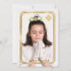 Feature your child's photo with just a little shimmer. It's this year's new trend in invitations. You can add customized wording on the back for celebration details. The featured cross can be dragged to any location, made larger or smaller (+-) or eliminated. You can also change the back color by selecting "Edit", "Background", Pick a color from the "Advanced" color chart, click "Done".