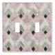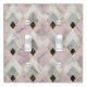 An Art Deco Styled Pattern Double Toggle Light Switch Cover In Pink, Gray, Gold And Black Marble Styling