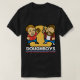 My 11 yo wore adult XL (5’7” 165#). The 8yo is small framed. She wore adult small and tied it in the back. Grandma wore adult large with long sleeve shirt underneath. Tall girl adult medium. Dark haired male adult large. Good quality dark Heather gray, Gildan brand shirt. -it was next up from basic choice and cost about $20 per shirt. Not too thick or thin. Washed and dried well, no major shrinkage. Not see-through. Can wear a bra under it fine. Screen print is just as shown and well done, front and back.