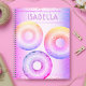 Three sparkly, chic, faux blue pink yellow orange purple rainbow doughnuts with faux glitter and foil and elegant typography overlay a faux metallic purple ombre background on this trendy, simple, modern custom name spiral notebook. An additional glitter studded rainbow ombre doughnut adorns the back. Personalize with your name. 8 different inside paper designs to choose from. Makes a stylish statement every time you use it. A great gift for back to school!