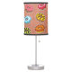 The lamp looks exactly like the picture, bright and colorful. The lamp shade is plastic not what I expected, however I love it! The printing is clear and the name can easily be read.