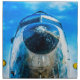 Douglas DC-3 aircraft also known as Dakota and C-47 Skytrain. Frontal view of cockpit and two propeller blades against blue sky. Textured photography. The history of aviation