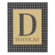 Stylish wall art features monogram letter D in Clan Douglas tartan plaid with matching background and customizable text